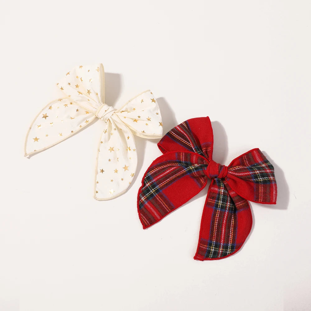 Festive barrettes designed for girls, featuring a charming plaid pattern.