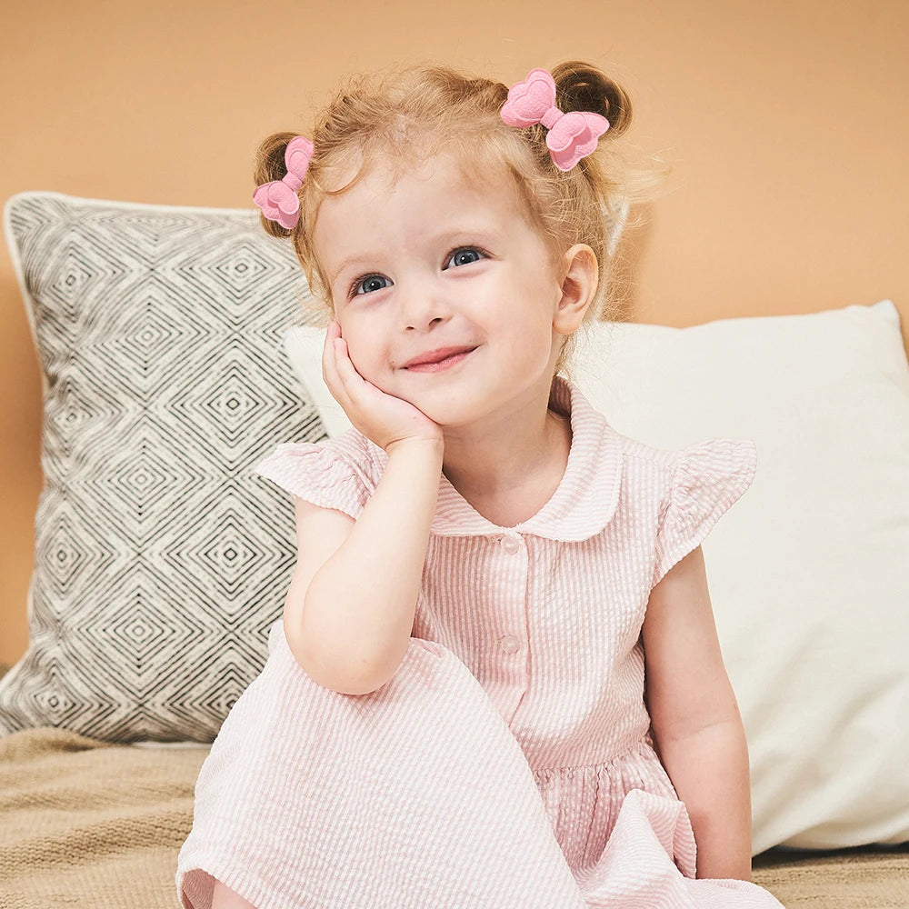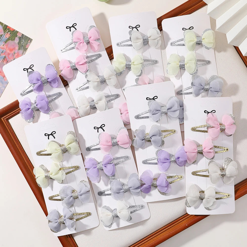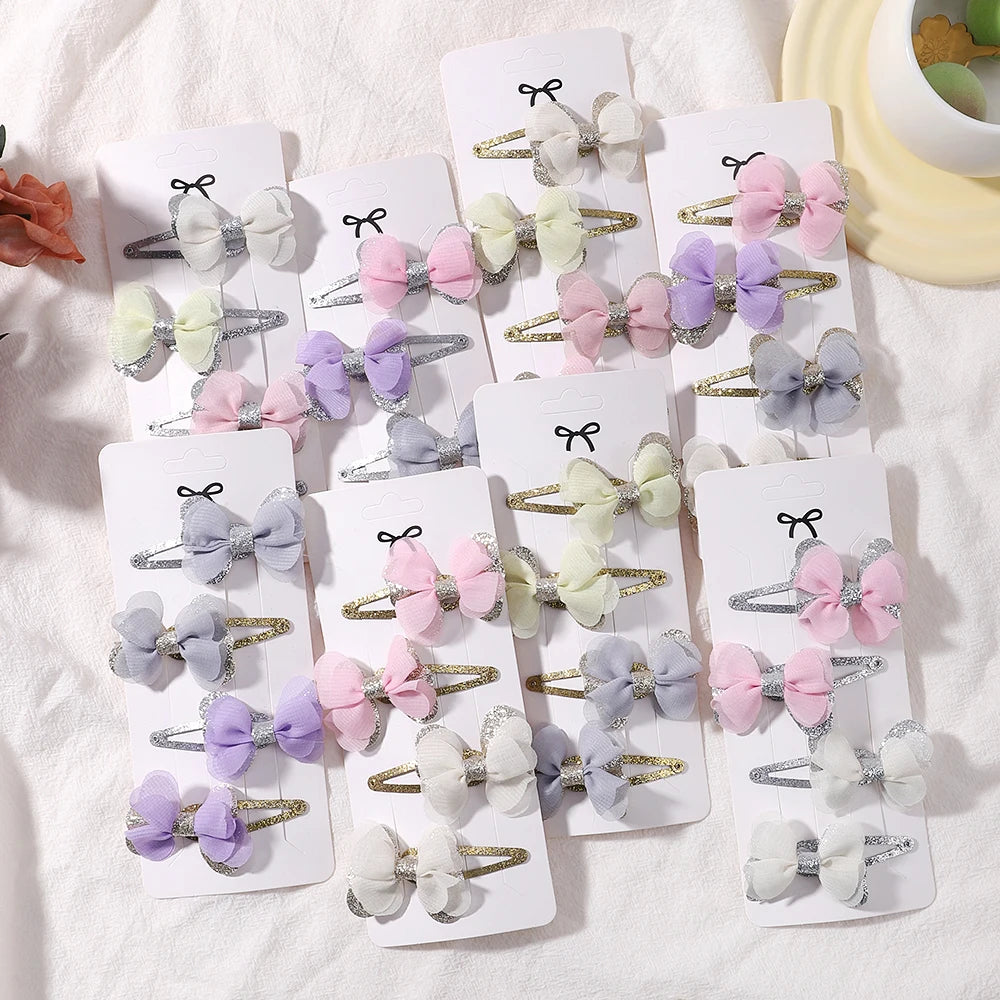 Set of 4 embroidered bow hair clips designed for children's bangs.