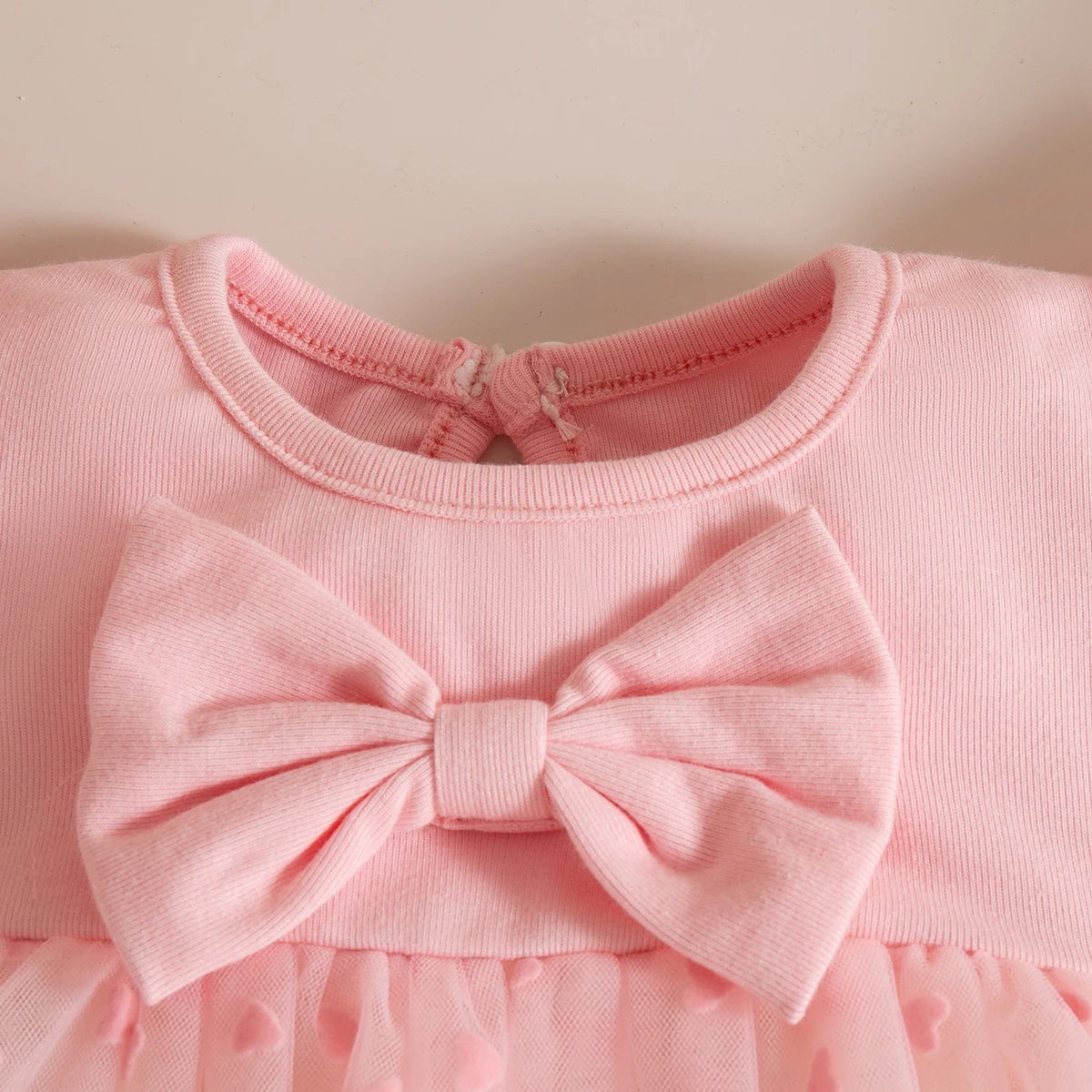 Baby Girl Dress Summer Bow And Love Pattern Knit Short Sleeve Puffy Baby Dresses Cute Casual Girl Kid's Dress