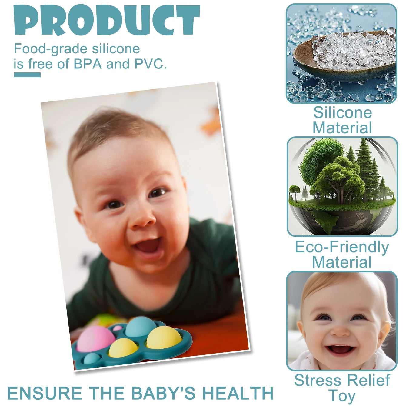 Encourages sensory play and finger coordination through soft pressing bubbles.