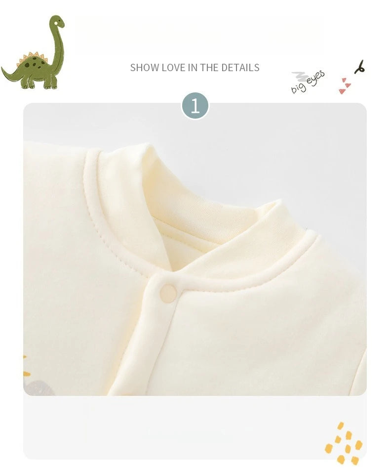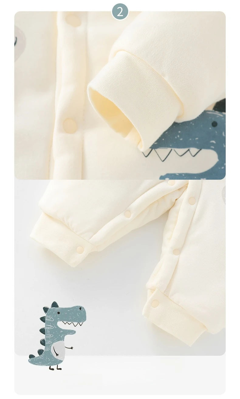 Keep your little one warm and adorable this winter with this soft cotton baby romper. The single-breasted O-neck design makes dressing simple, while the playful cartoon print adds a cute touch. Perfect for daily wear, sleep, or winter outings.