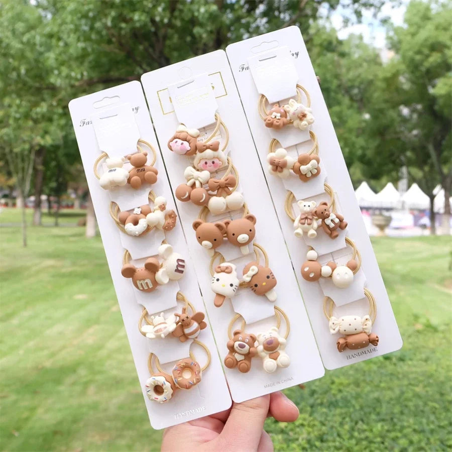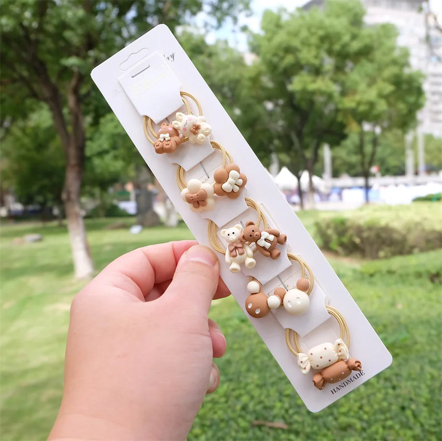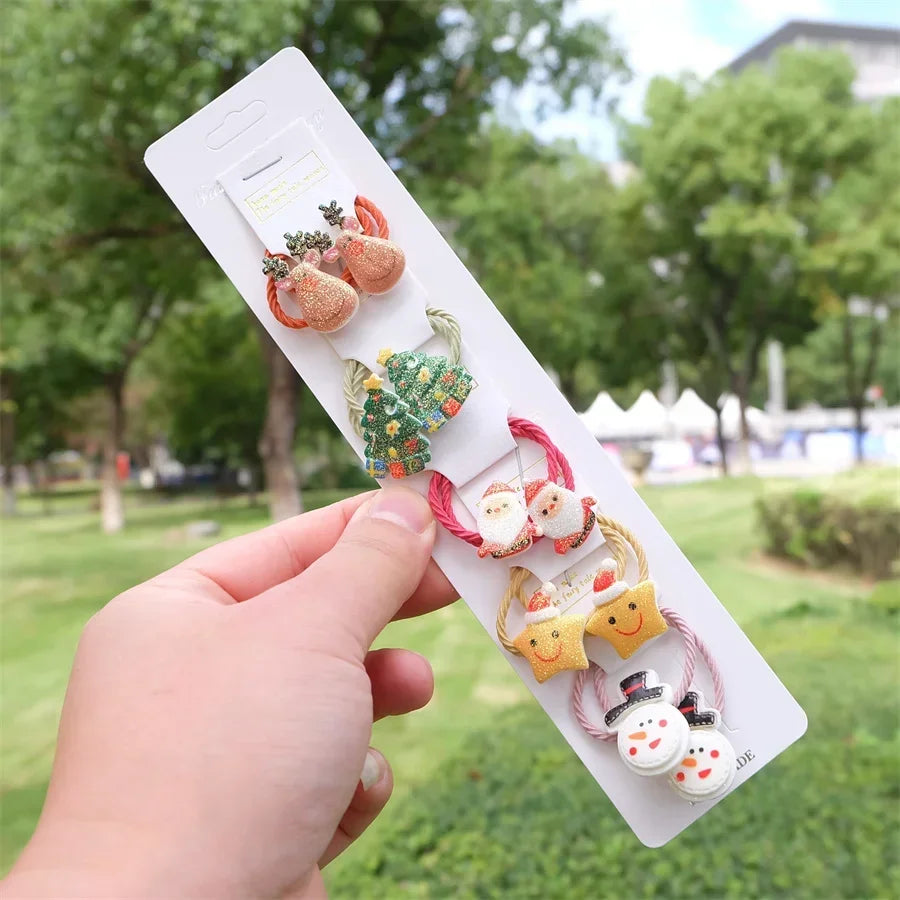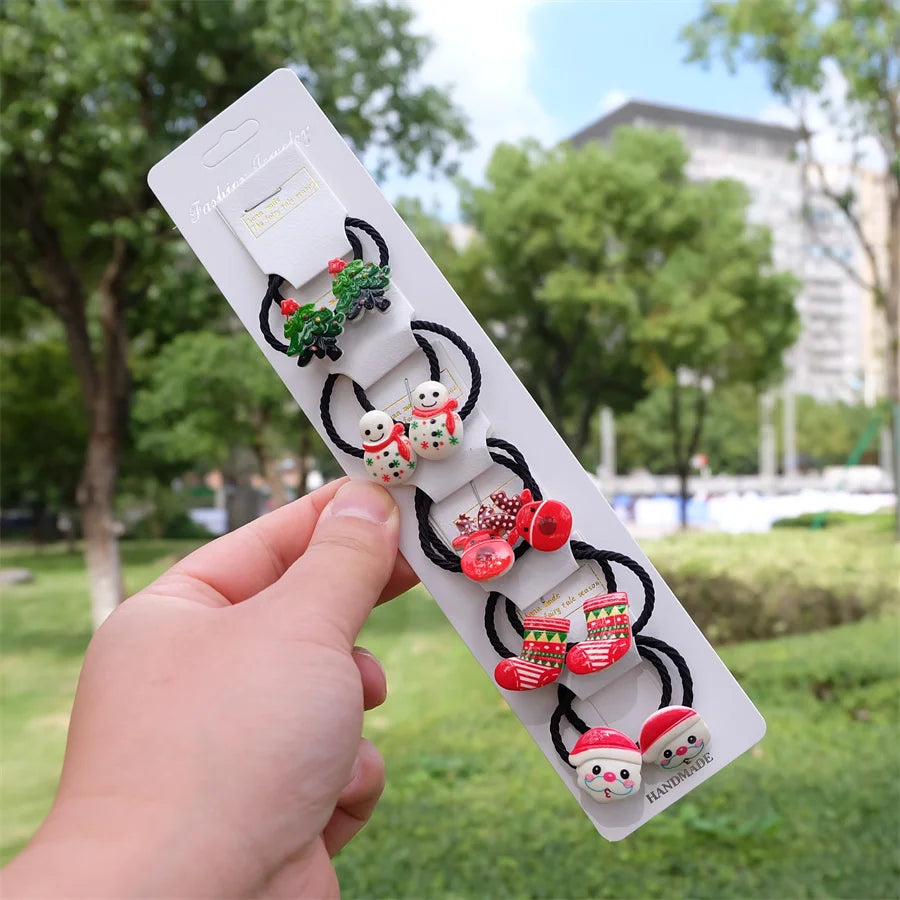 These colorful, handmade elastic hair bands are perfect for girls, featuring fun cartoon designs like cats, bears, rabbits, penguins, and bees. The festive Christmas-themed patterns include trees, Santa, elk, ice cream, and donuts, making them a playful accessory for any season. Crafted from durable polyester and plastic, these hair ties offer a comfortable and secure fit, ideal for everyday casual wear.