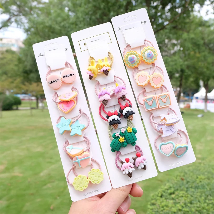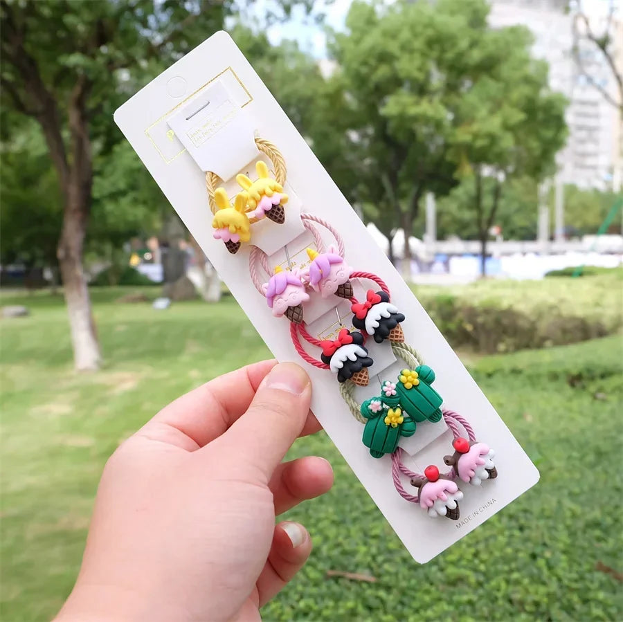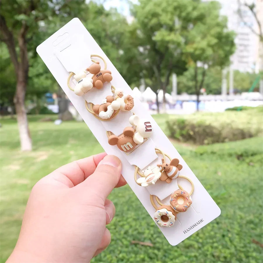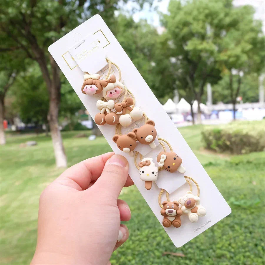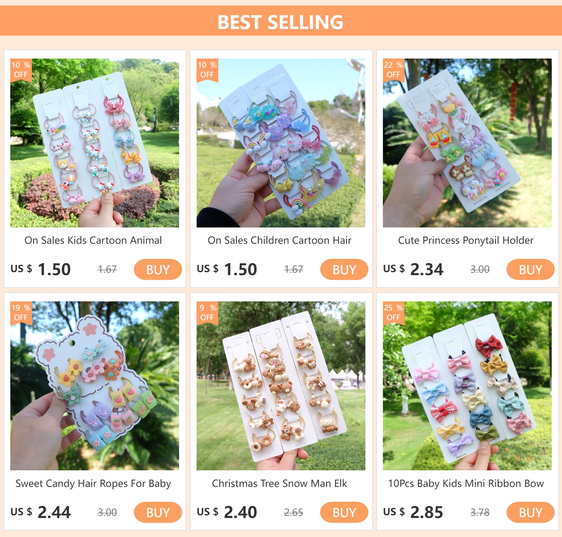 These colorful, handmade elastic hair bands are perfect for girls, featuring fun cartoon designs like cats, bears, rabbits, penguins, and bees. The festive Christmas-themed patterns include trees, Santa, elk, ice cream, and donuts, making them a playful accessory for any season. Crafted from durable polyester and plastic, these hair ties offer a comfortable and secure fit, ideal for everyday casual wear.