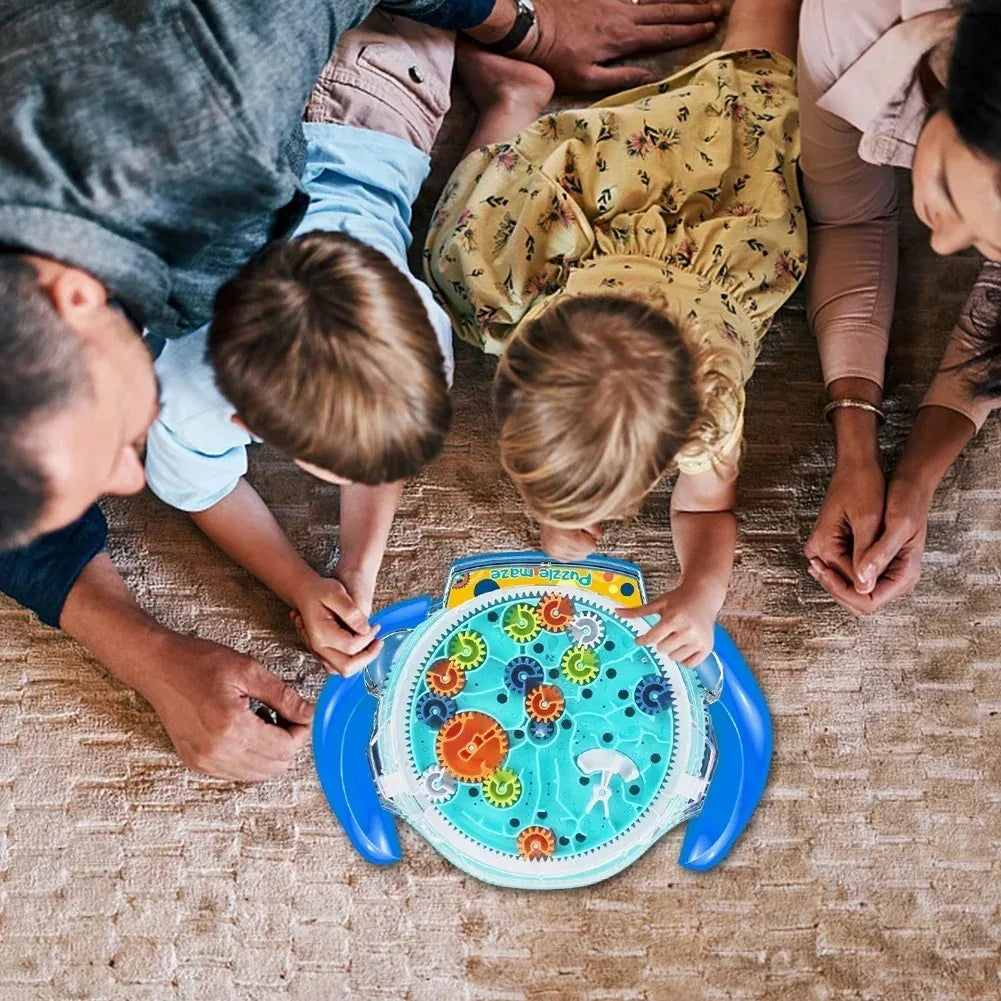 3D maze puzzle toy featuring multi-level labyrinths and rotating gears for ages 3 and up.