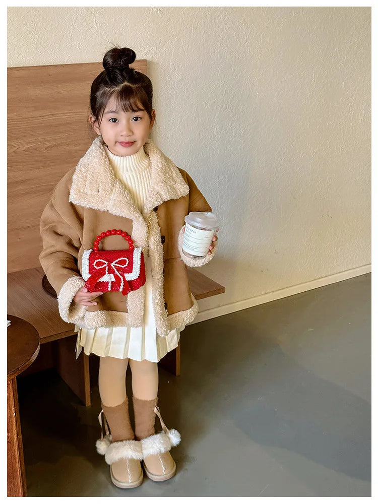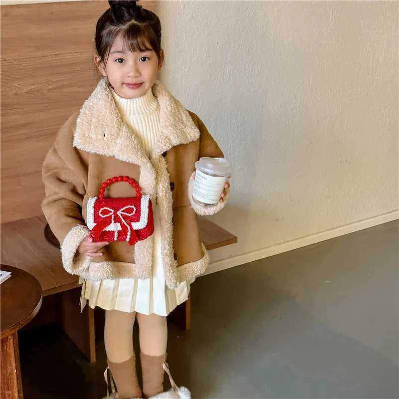 Soft polyester flap bag for girls aged 5-7 years.