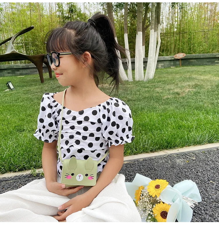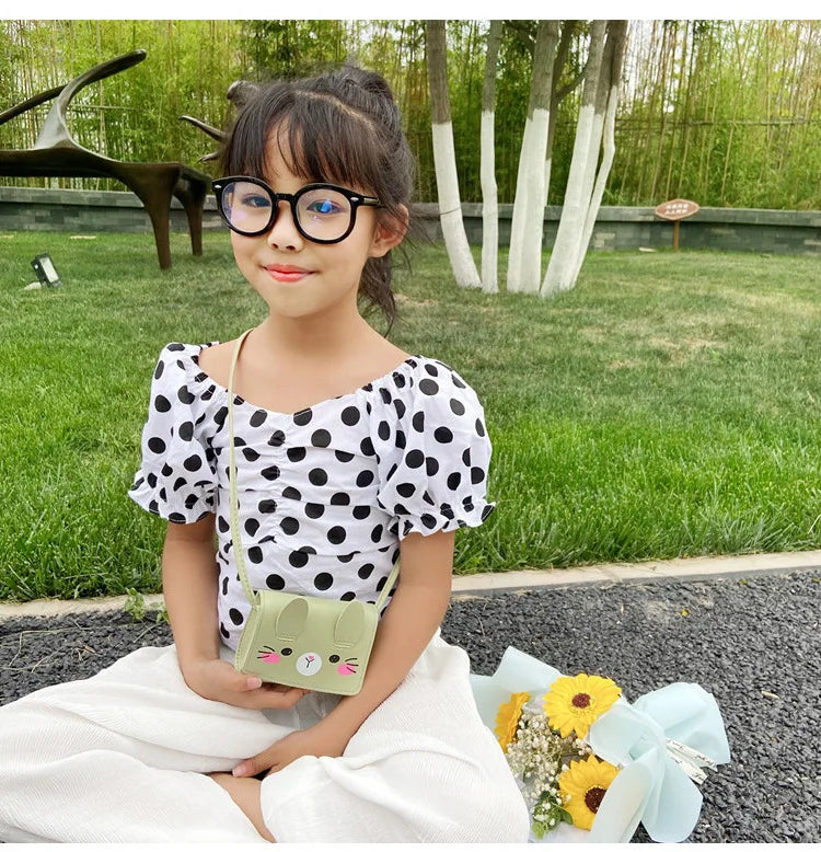 This soft PU flap bag is designed for girls aged 2-4 years, featuring a cute cartoon pattern.