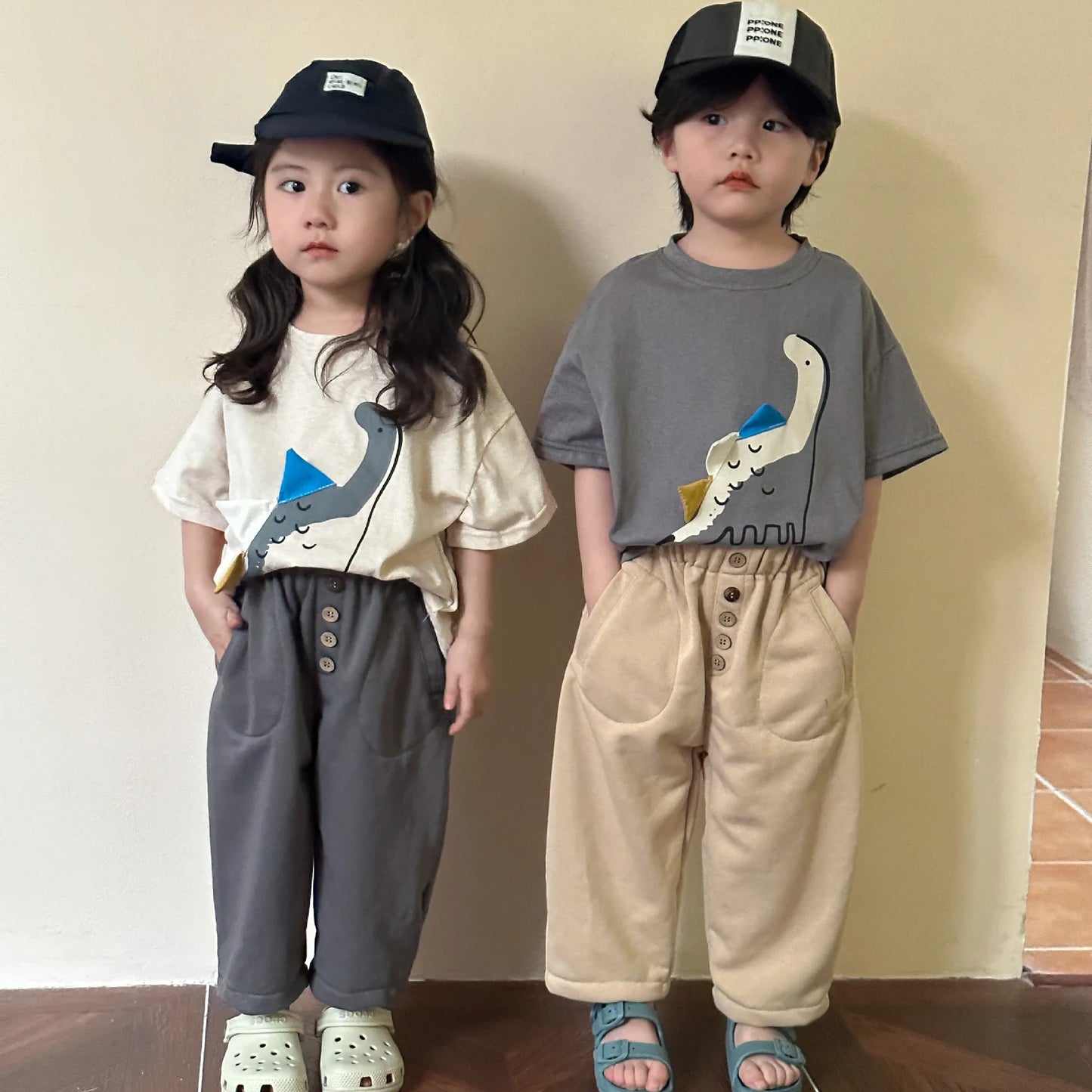 Cute unisex O-neck cotton t-shirt featuring an animal print, perfect for active summer wear for children aged 2–7 years.