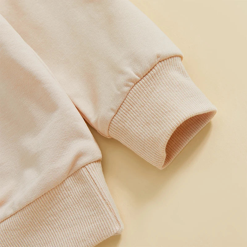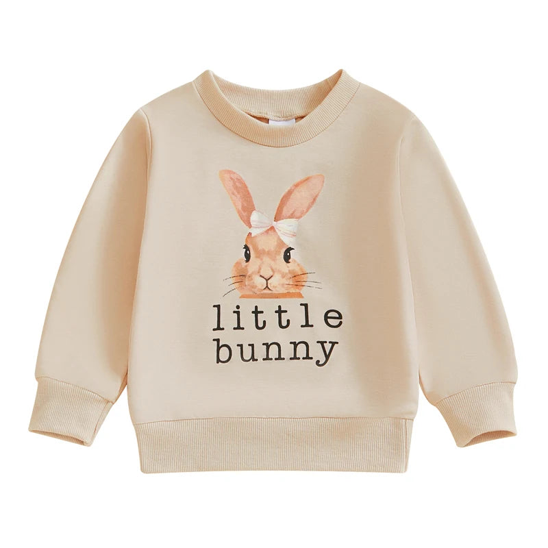 Adorable unisex toddler sweatshirt with a cute Easter rabbit and letter print.