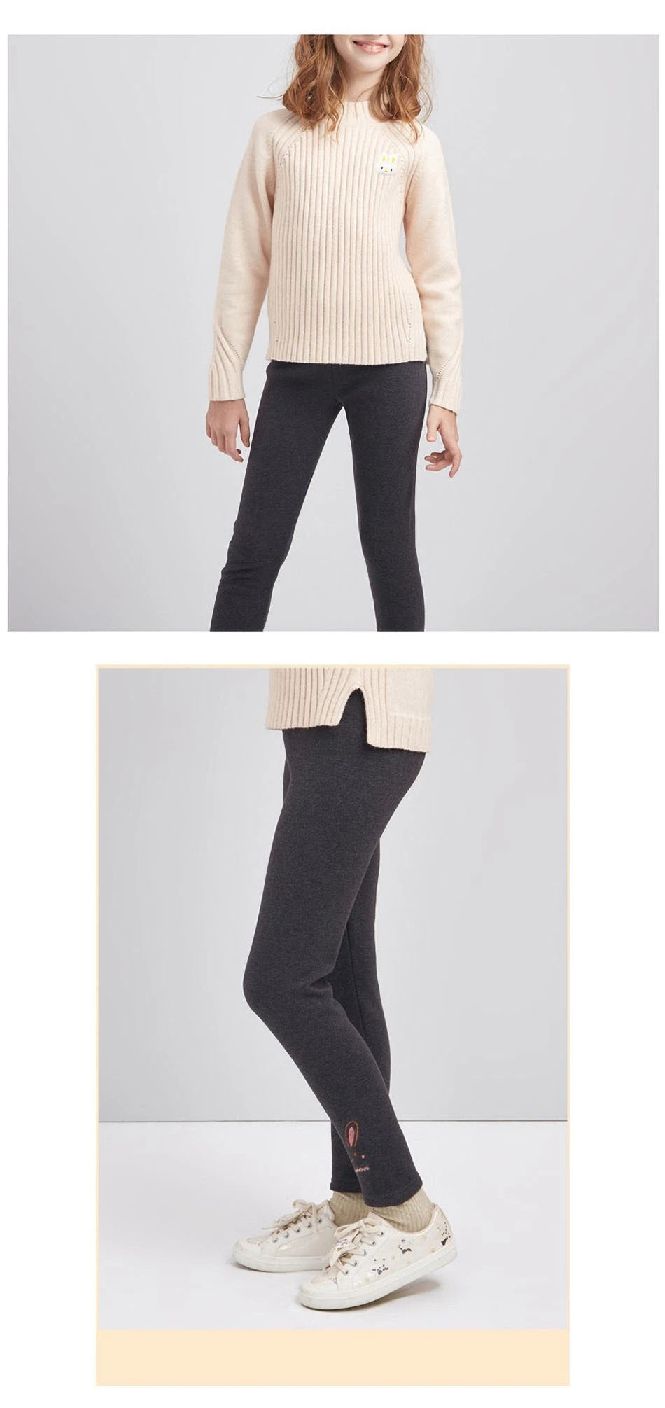 Cozy leggings made from polyester and spandex for a flexible, snug fit.