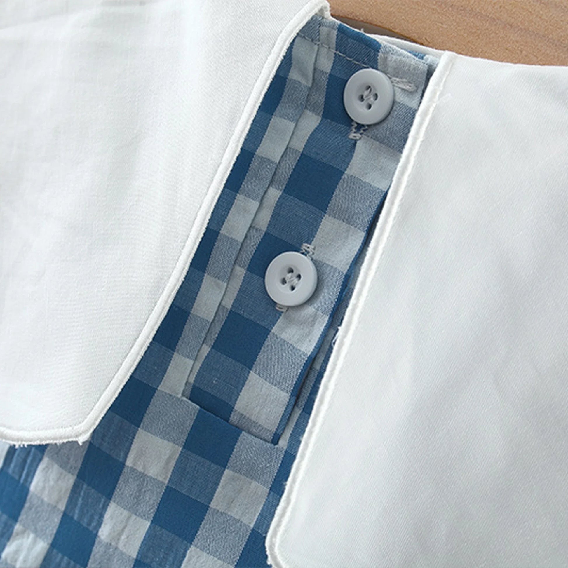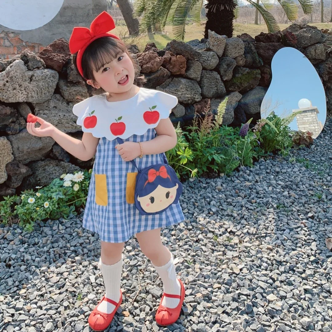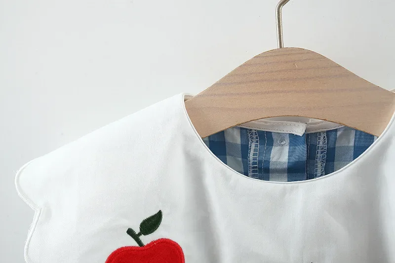 Girls' Dress Summer Children's Wear Apple Embroidered Lace Doll Collar Plaid Contrast Sleeveless Children's Dress