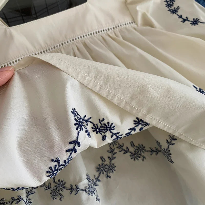 Adorable girls’ autumn outfit set featuring a floral design with square collar.