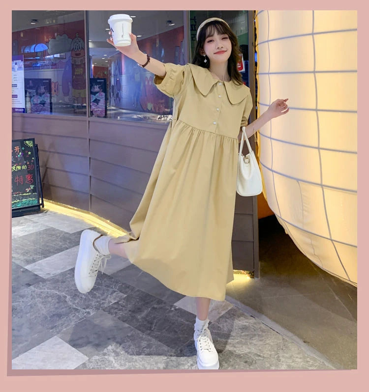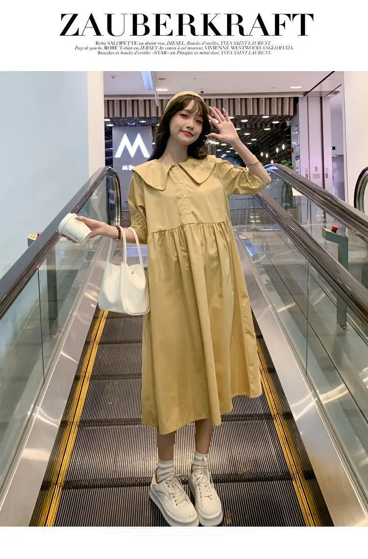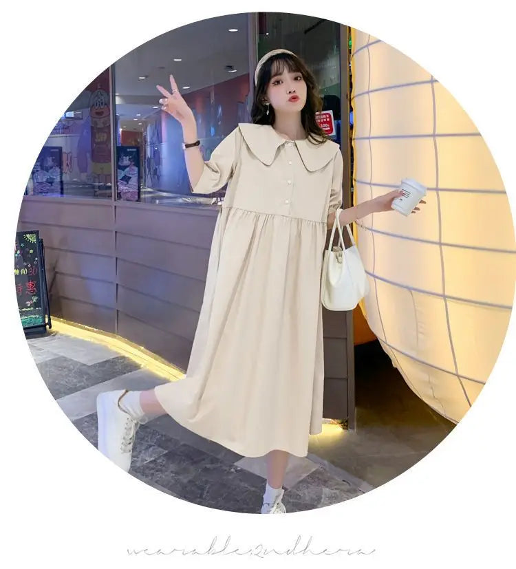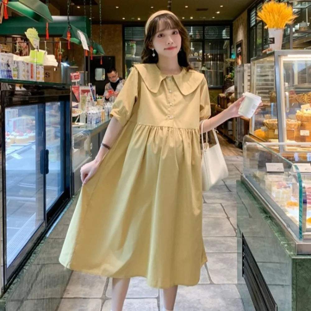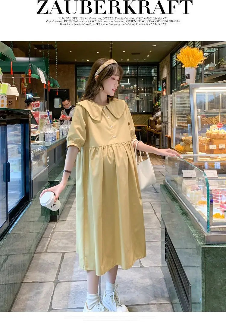 Collar Ruffled Patchwork Maternity Dress