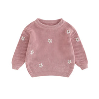 Keep your little one cozy and stylish with this Baby Girl Long Sleeve Knit Sweater. Crafted from a soft and breathable blend of acrylic fibers, chinlon, and PBT, this sweater is designed to provide warmth without being too heaRomper Dress with Headbandvy, making it perfect for spring and autumn wear. The crew neck design and regular fit ensure comfort for everyday use, while the embroidered floral patterns add a charming and fashionable touch.
