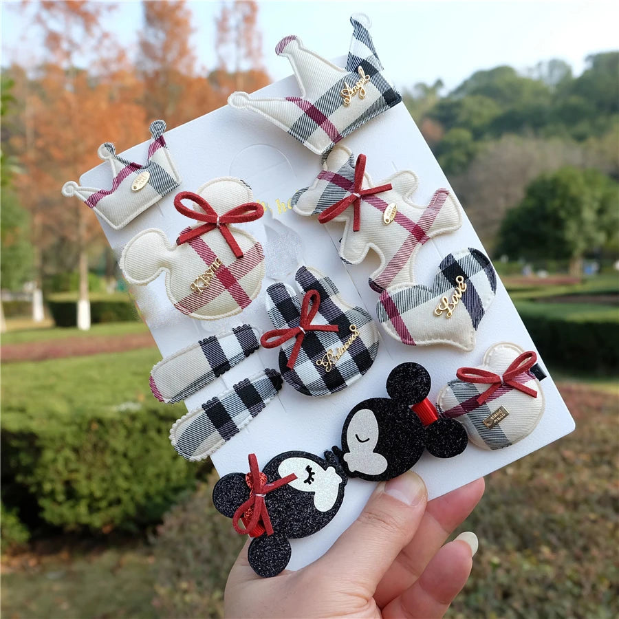 A charming set of colorful hair accessories designed for girls, featuring playful cartoon patterns including crowns, hearts, stars, bears, mice, rabbits, and bows. Made from a mix of polyester, PU, cotton blends, and alloy, these hairpins and clips offer both style and durability. The set includes various types such as hairpins, barrettes, and hairgrips, perfect for adding a fashionable touch to any child’s hairstyle.