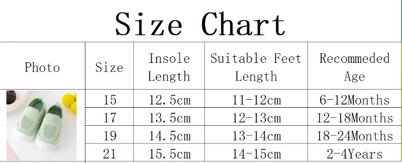 Available in sizes 15–21 (12.5–15.5 cm) for ages 6M–4Y.