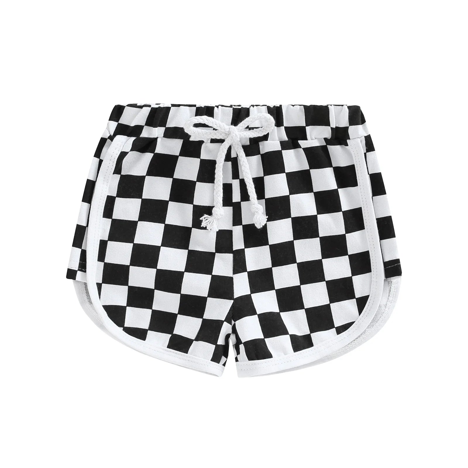 Trendy checkerboard print shorts designed for toddlers with a cool streetwear vibe.