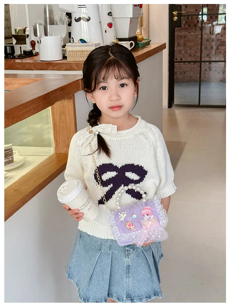 This stylish flap bag is designed for girls aged 5 to 7 years. Made from soft PU leather, it features charming beading and bow decorations for a fashionable touch. The bag has a single adjustable shoulder strap (120cm) for comfortable carrying and offers versatile use for various occasions. Measuring 14cm in width, 10cm in height, and 5cm in thickness, it’s perfect for everyday adventures. Please note slight variations in color and size may occur due to lighting and manual measurement.